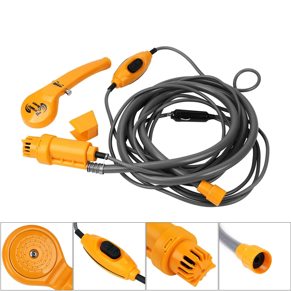 Портативный инструмент для мытья автомобиля, помпа для мойки автомобиля, 12 В, вода из ведра в устойчивый, Бережный душевой поток для кемпинга, путешествий