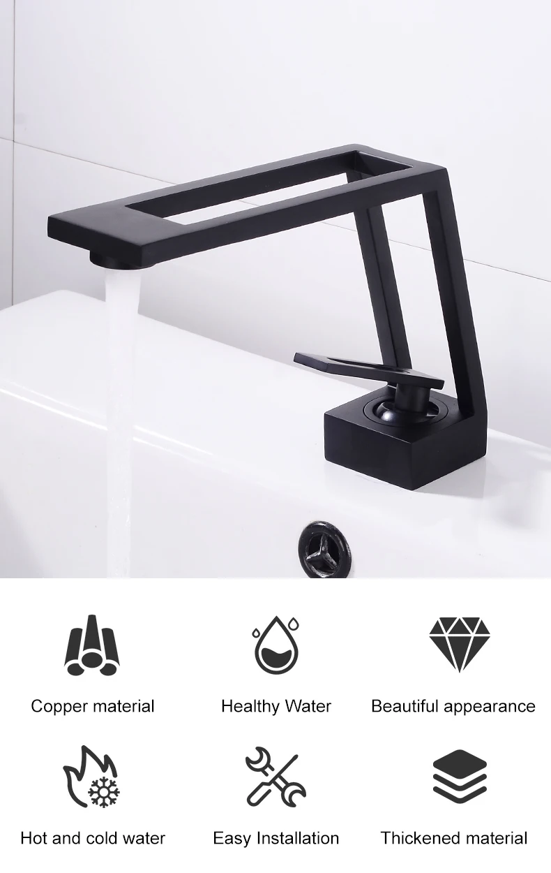 Смеситель для раковины Elite ELF1409, Черный кран для ванной комнаты с креплением на поверхность, для холодной и горячей воды