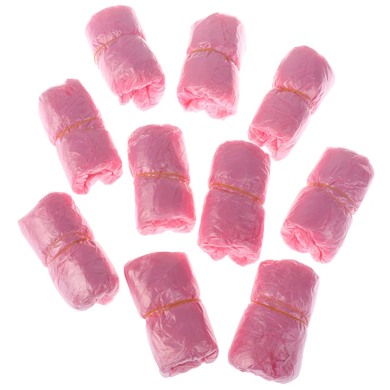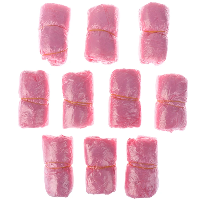 100 шт.лот, толстые, чистящие бахилы, пластиковые, водонепроницаемые, одноразовые бахилы, дождливый день, защита для пола, розовые бахилы