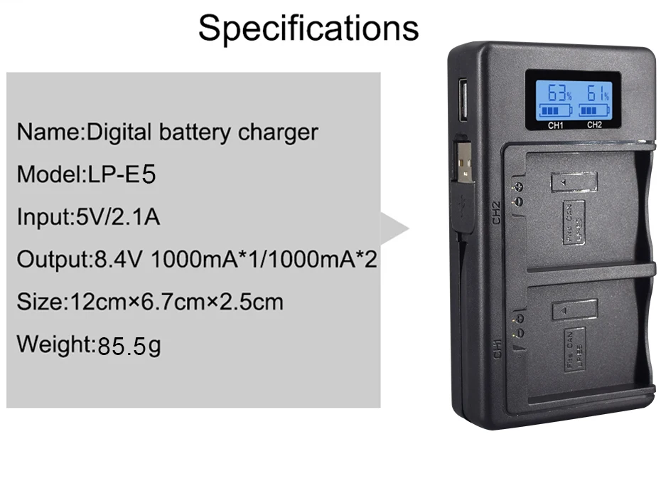 Зарядное устройство PALO LPE5 LP-E5 LP E5, зарядное устройство с дв...