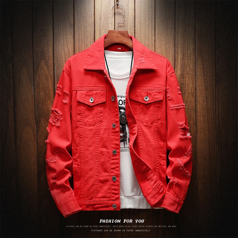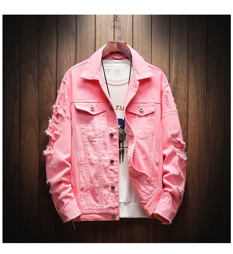 Мужская джинсовая куртка, желтого, розового цвета, Повседневная джи...