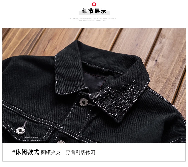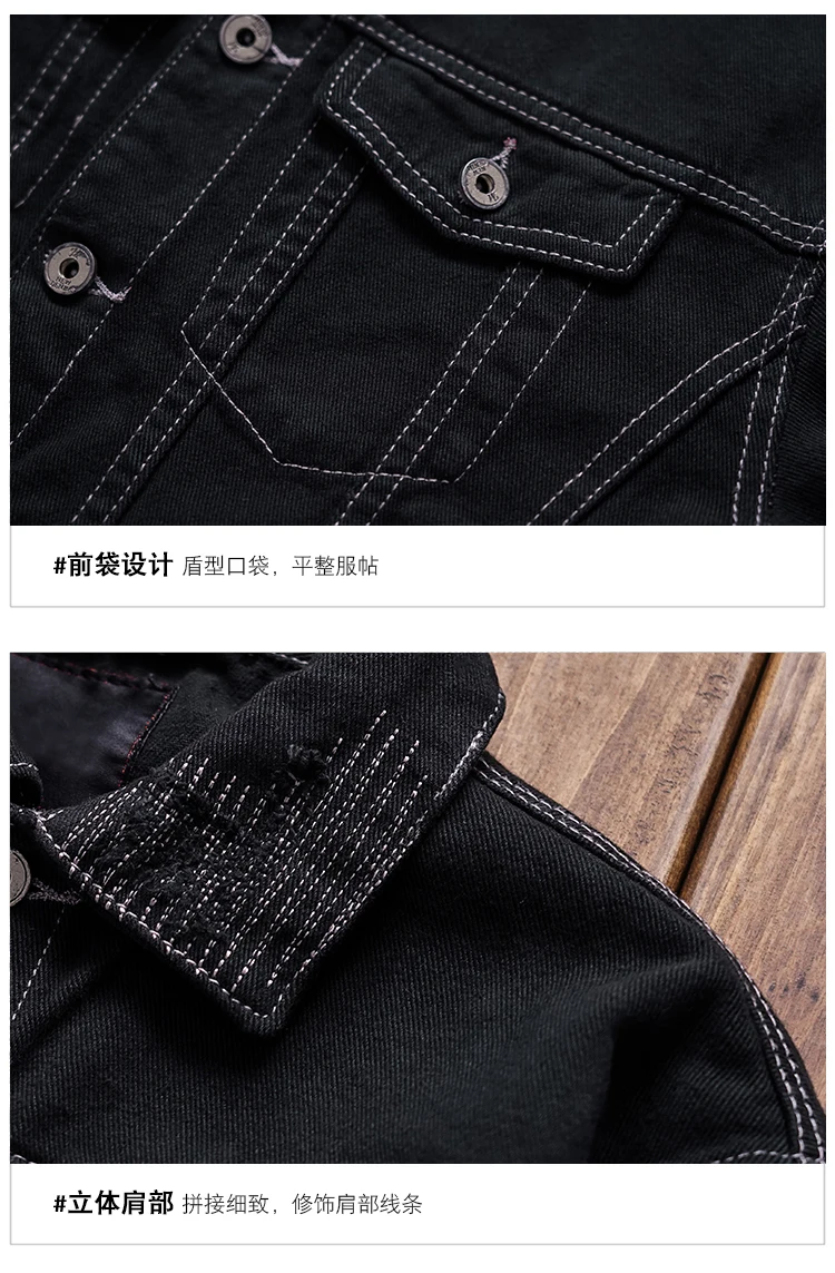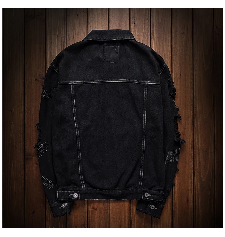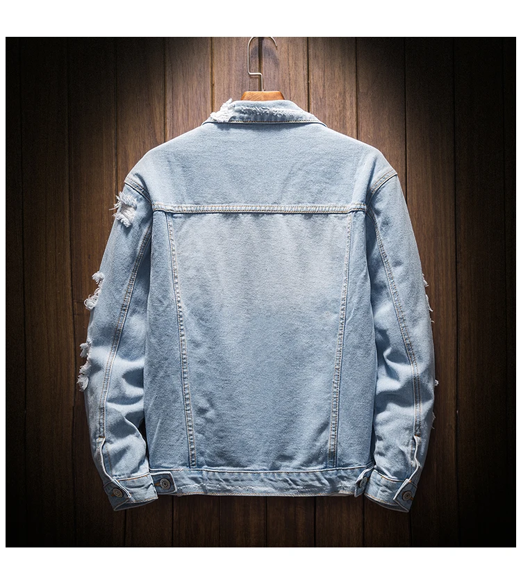 Куртка мужская джинсовая с отворотом, простой облегающий пиджак из денима, пальто с длинным рукавом, с дырками, осень