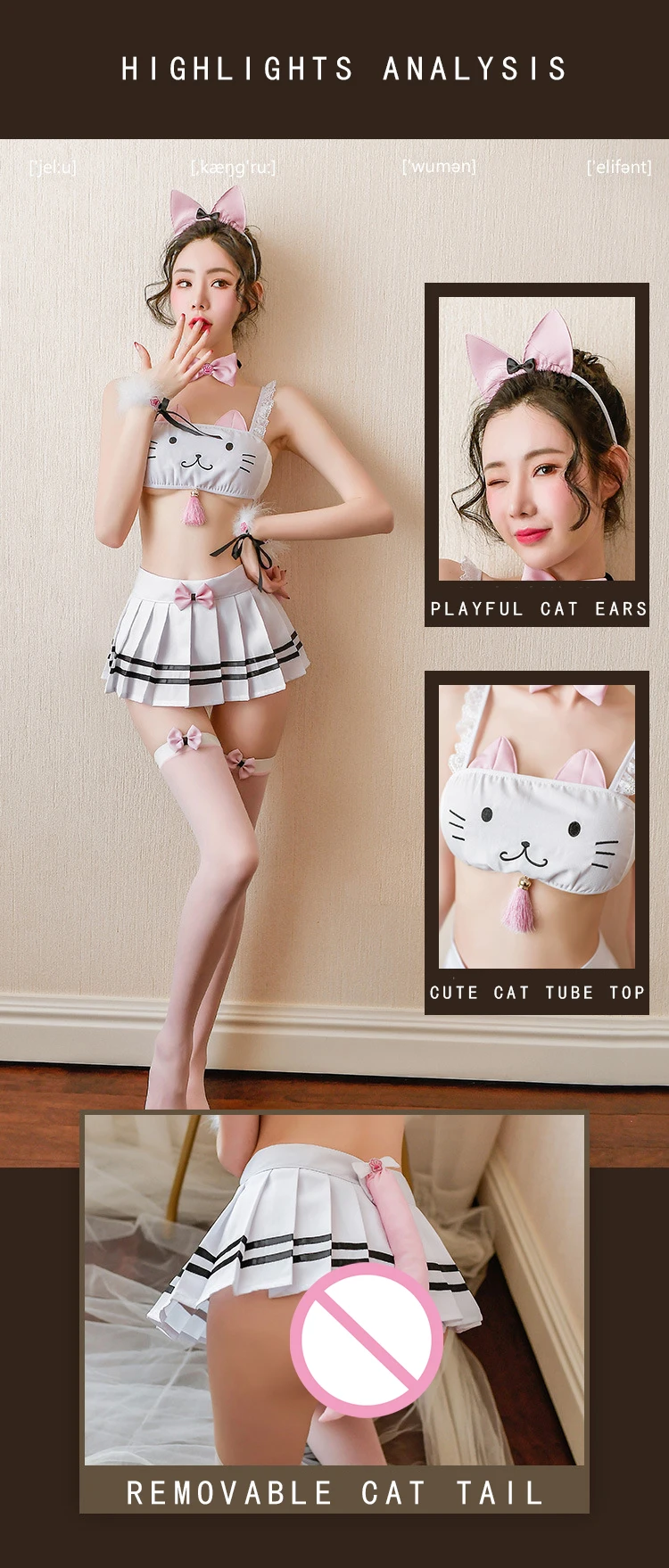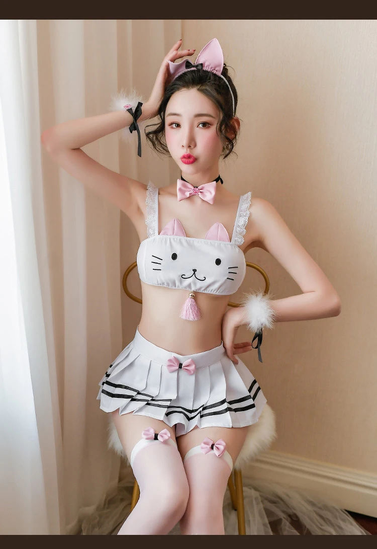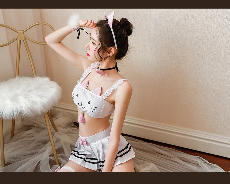 Пижама yhotmeng для женщин, пикантная Ночная рубашка на бретельках, комплект для дома, Ленивец, галстук-бабочка, симпатичная плиссированная труба для кошки, топ с разрезом, костюм Ленивец