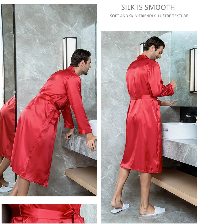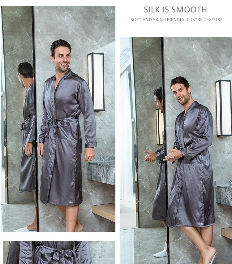 Халат шафера мужской повседневный, одежда для сна с V-образным вырезом, кимоно, юката, банный халат шелковая атласная ночная рубашка, домашняя одежда Xxl, на лето