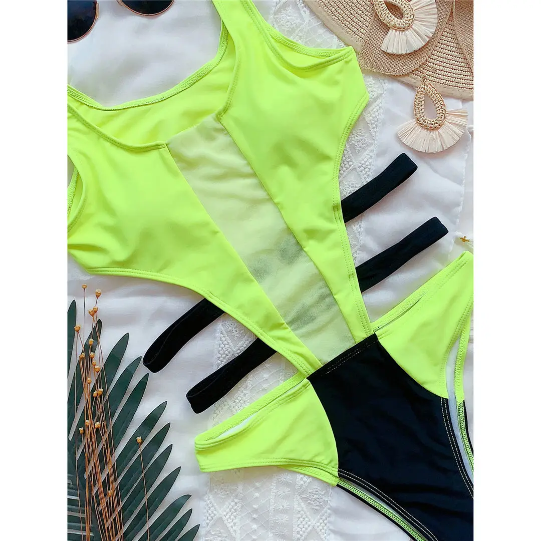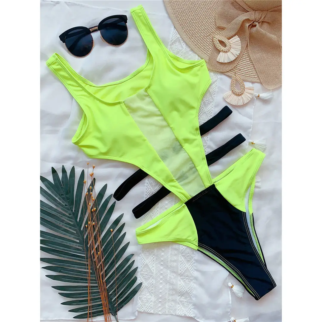 Новый Неоновый зеленый розовый 2021 сексуальный слитный купальник н...