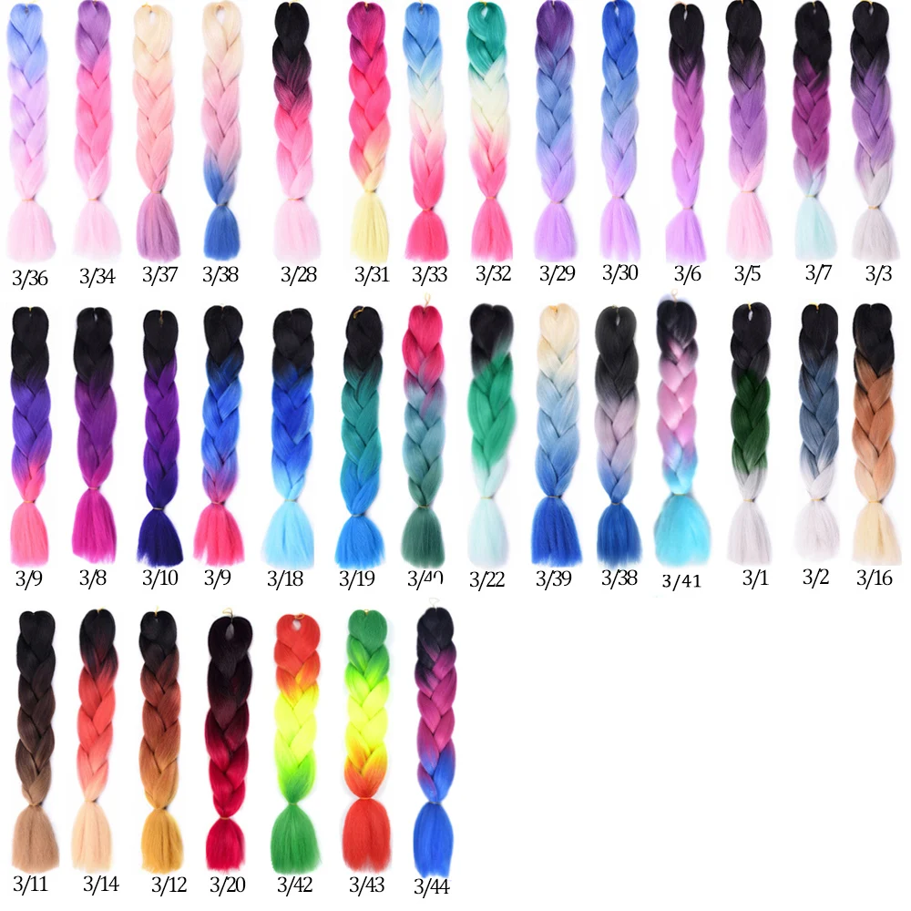 Тренд способ 24 дюйма синтетические волосы длинные Джамбо косички волосы для наращивания коробка косички для женщин розовый фиолетовый желтый зеленый волосы