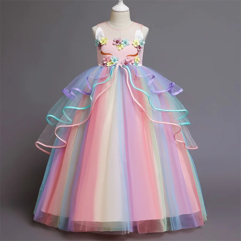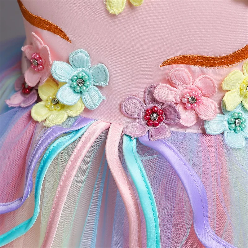 Детское платье с единорогом, с цветами, бисером, для девочек, вечерние свадебные платья, одежда для детей, вечерние платья на день рождения, костюм принцессы