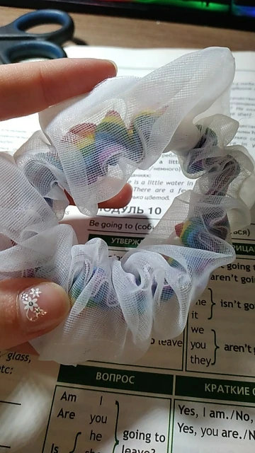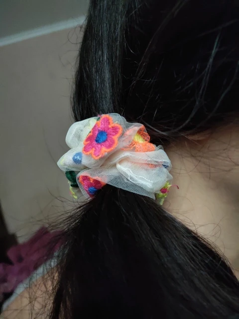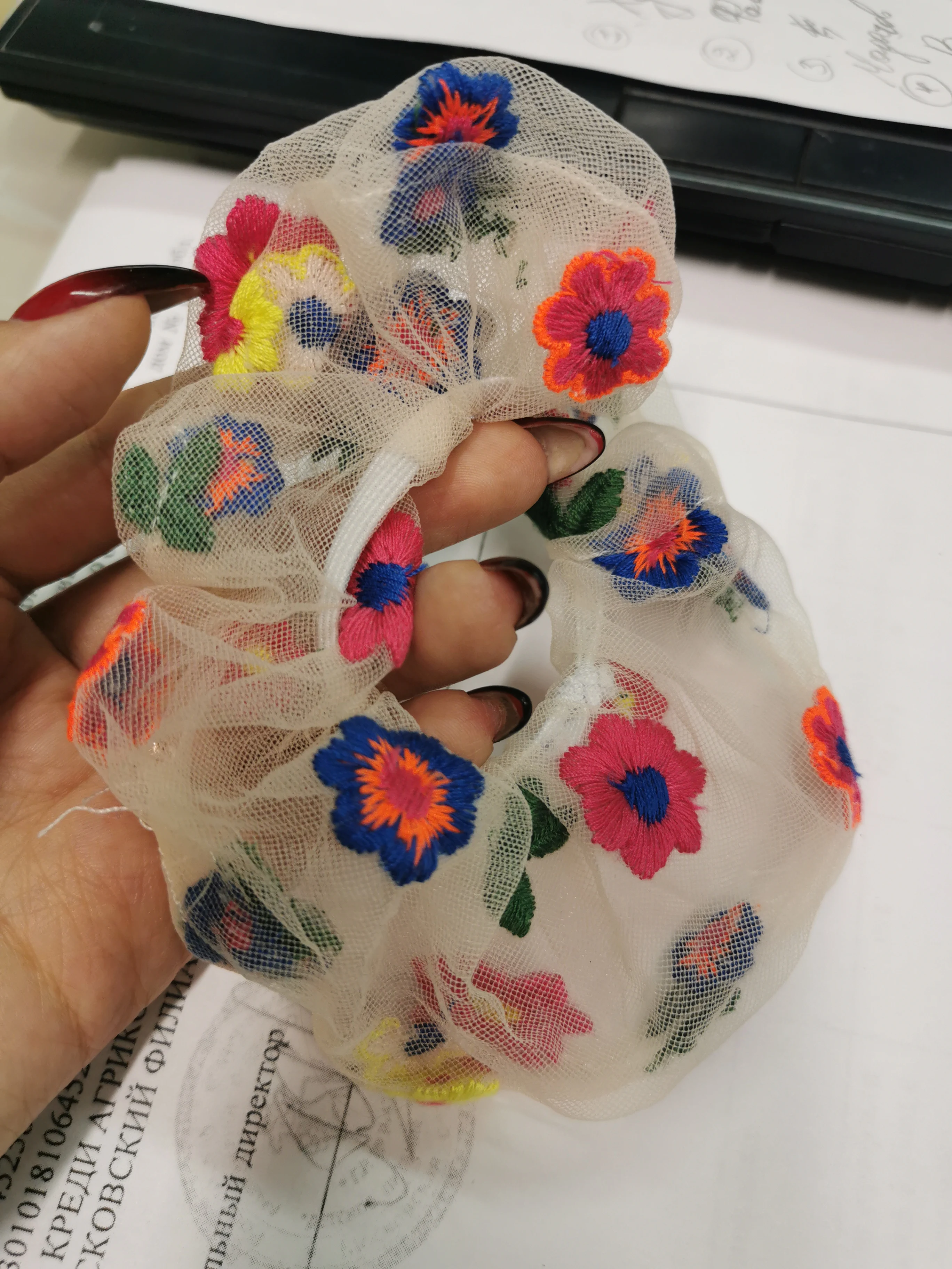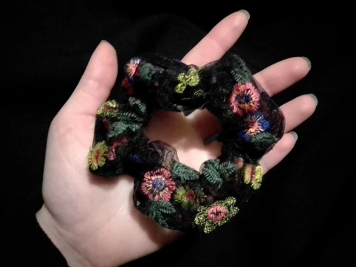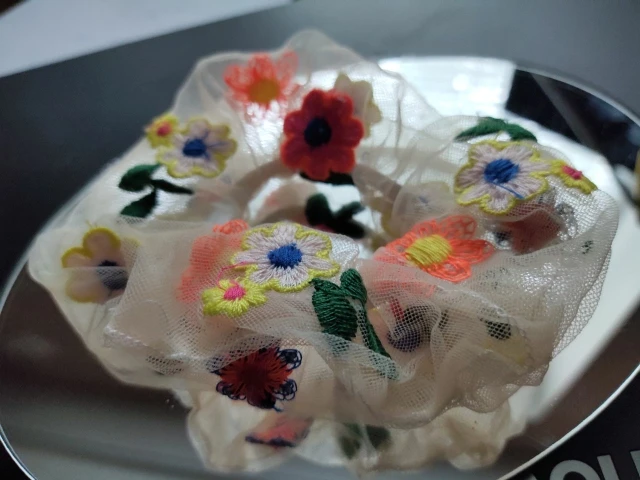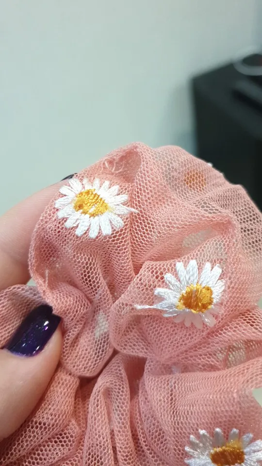 Хорошая резинка для волос, материал сеточка, есть небольшие погрешности в вышивке, но это не проблема, тем более за такие копейки