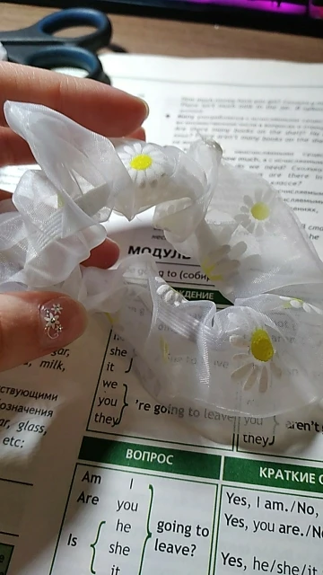 Резинка очень милая, волосы средней густоты держит хорошо, продавец отправил сразу))