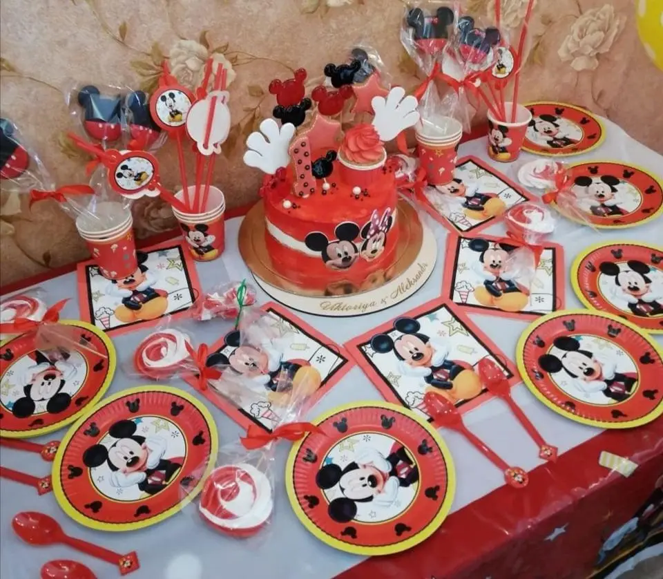 Горячая Распродажа, скатерть для детского дня рождения с Микки Маусом, украшение для детского праздника, одноразовая посуда
