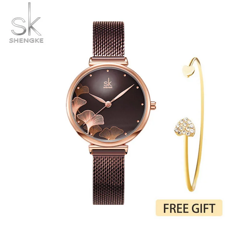 Shengke Новый дизайн женские часы Элегантные 32 мм Циферблат кофейн...