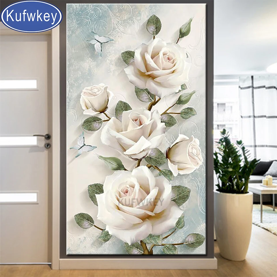 Картины для алмазной вышивки, квадратные, с изображением белой розы, ручной работы, 5d, цветок, рукоделие, украшение для дома, уникальный подарок