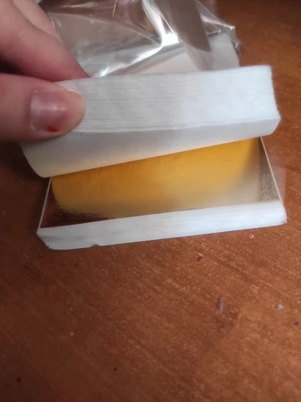Это нельзя назвать поталью, она сыпятся, все вокруг в этих золотых крошках, качественная поталь так себя не ведёт, клей под этой поталью сохнет очень долго имейте ввиду