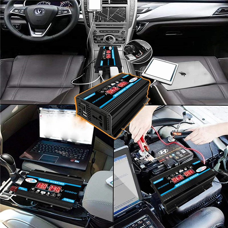 [То, что вы получаете] Автомобильный инвертор 4000 Вт, руководство пользователя, 2 зажима аккумулятора, 1 штепсельная Вилка для автомобильной сигареты и 100% обслуживание клиентов.