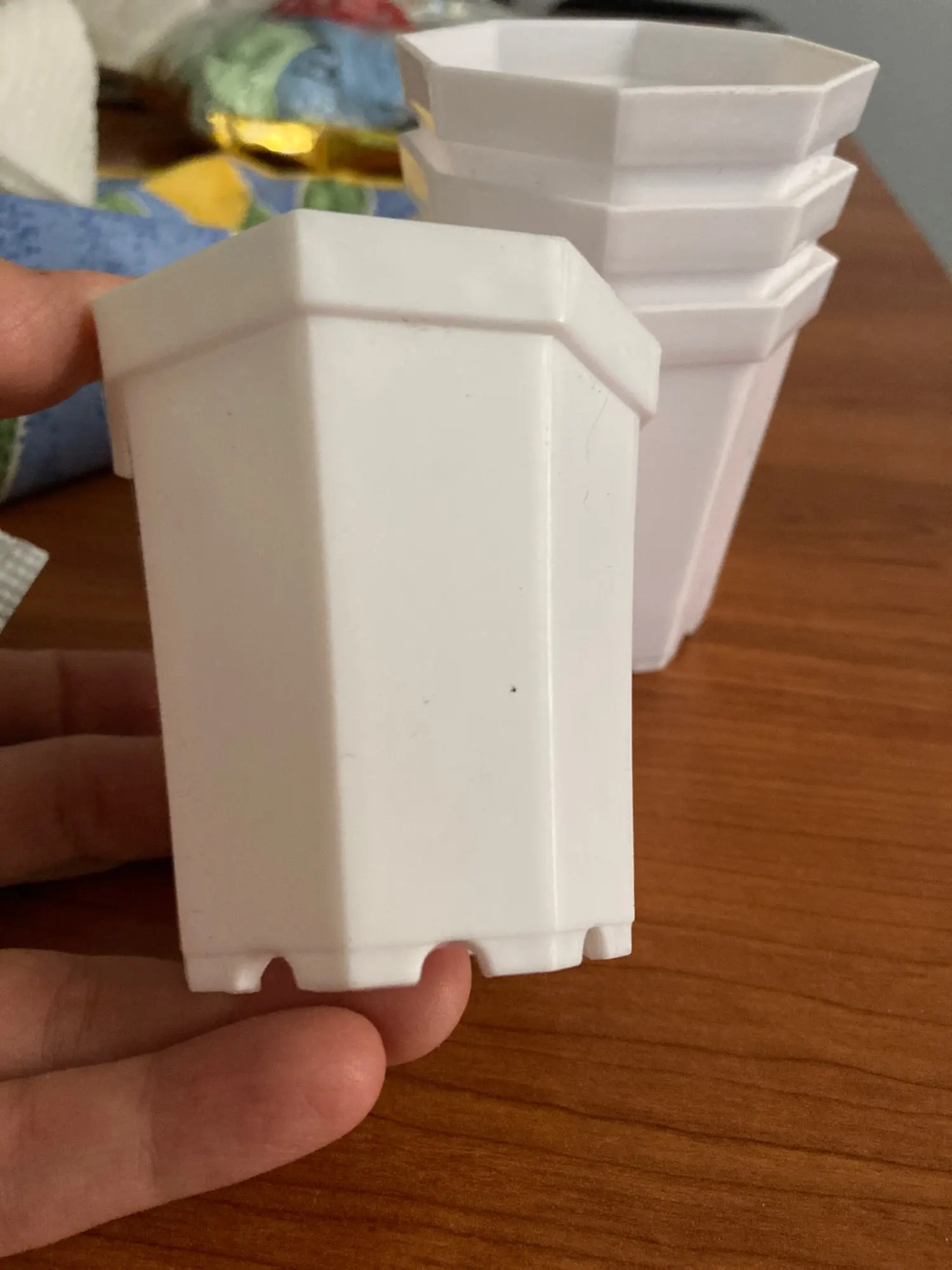 Горшочки хорошего качества. Пластик держит форму. На дне есть дренажные отверстия. Единственное, по размеру они совсем небольшие.