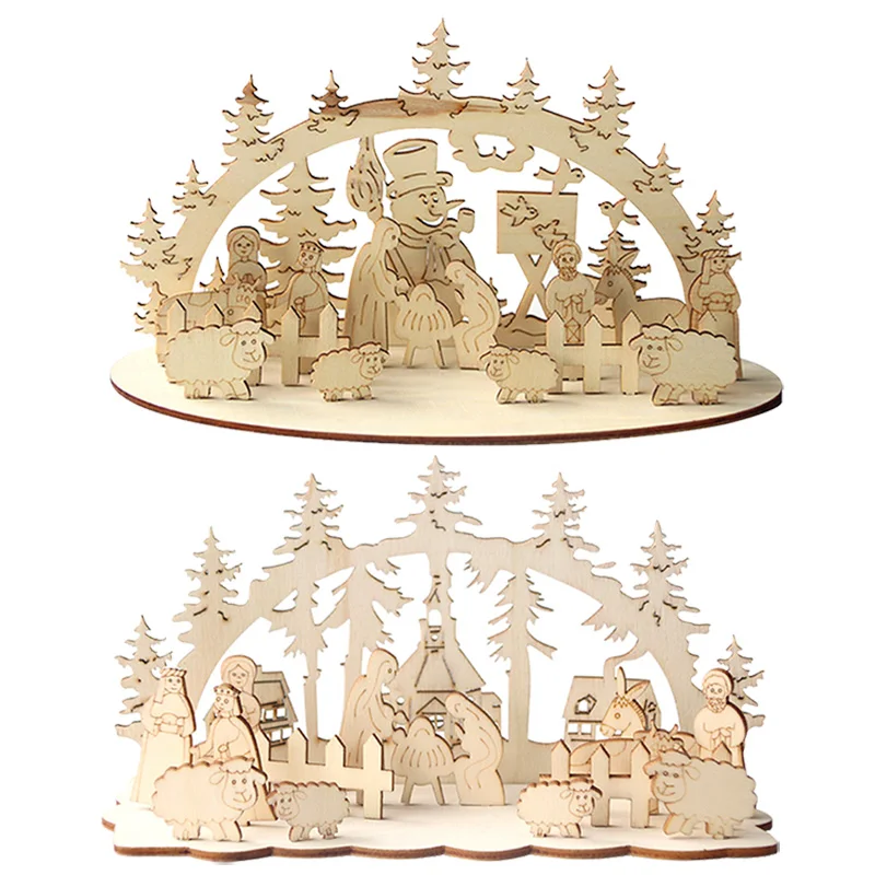 Деревянные рождественские украшения DIY, настольные украшения, рожд...