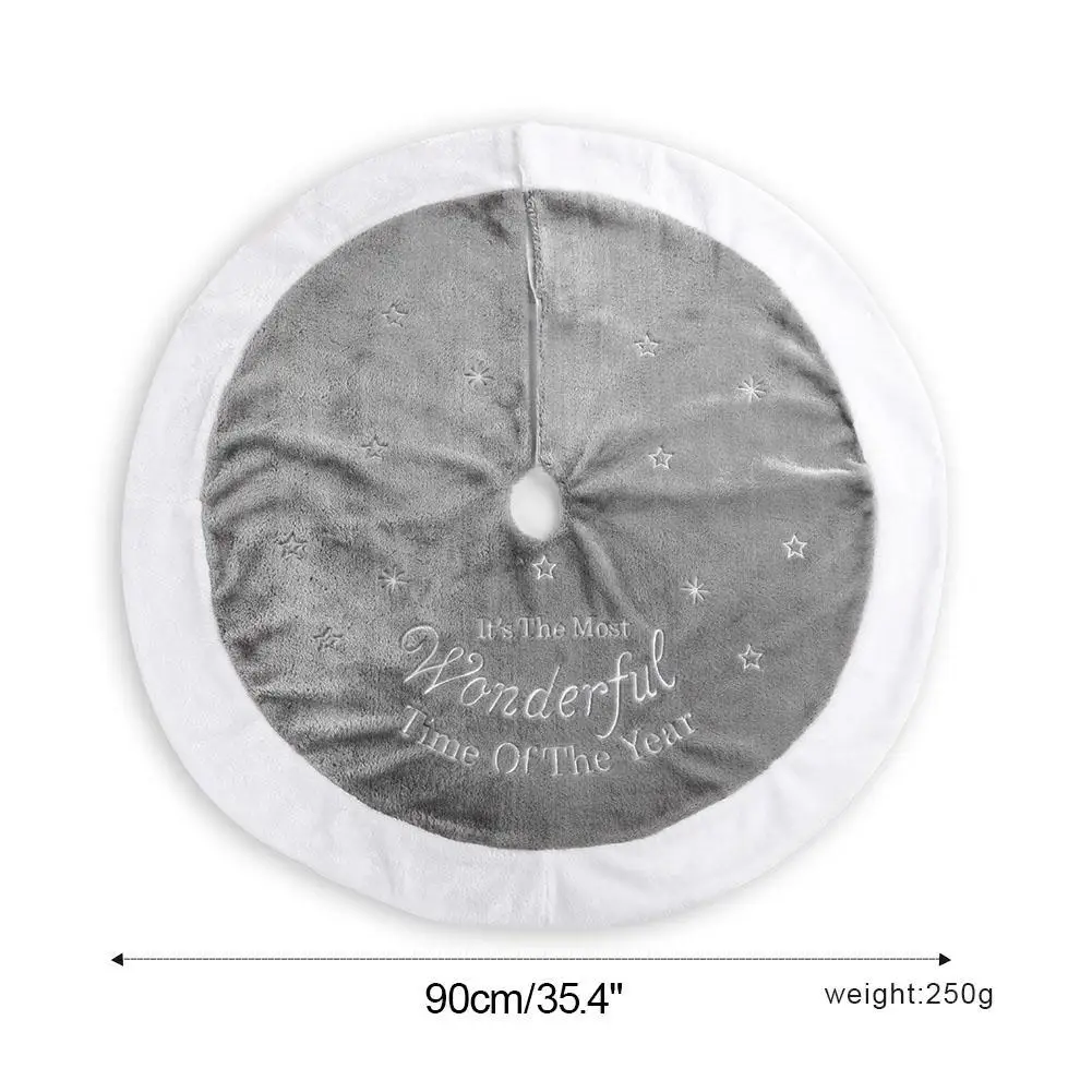 90 см Рождественская елка юбка Серый Флис ковер домашние украшения для рождественской вечеринки Счастливого Рождества декоративные фартукиОсобенности:Дизайн наклейки, прост в использовании.Хороший материал, отлично подходит для Рождественская юбка для елки.Может быть в качестве напольного коврика для украшения вашего дома на рождественские вечерние праздники.Улучшите новогоднюю атмосферу.Характеристики:Материал: флисДиаметр: 90 см/35,43"Цвет: как показано