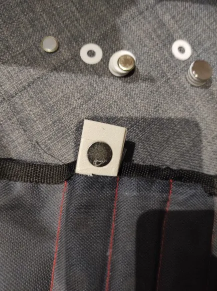 честный отзыв. пошито качественно. пять магнитов. мелочь держит. по тяжелее предметы ( сверло на 12) держит, но при резких движениях может и отлететь. думал будут качественные магниты. для мелочи подойдёт, но честно не советую ( лично моё субъективное мнение)