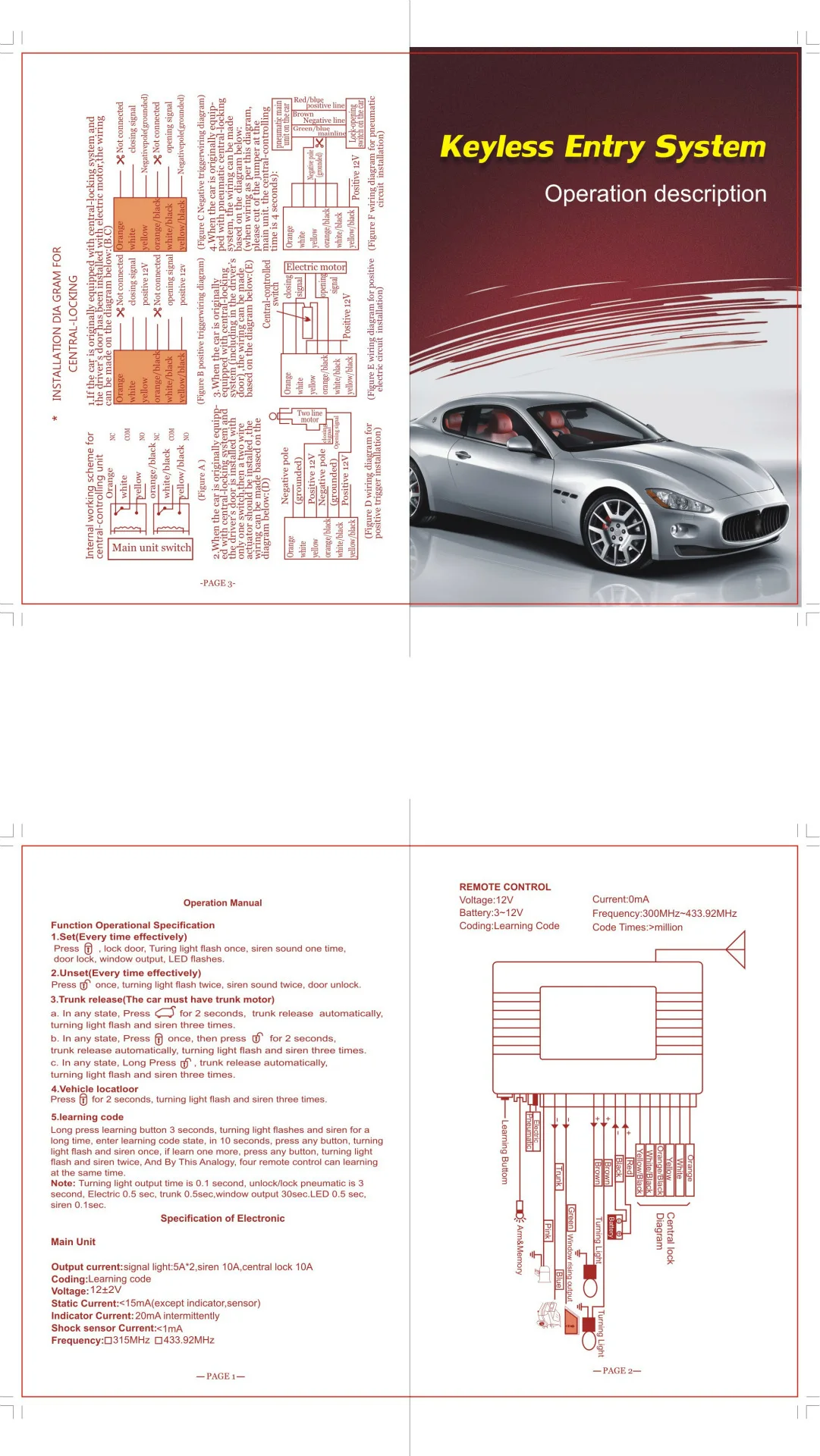 Основная функция: 1. Удаленное разблокирование и разблокировка! Разблокировка и блокировка 2. Поиск автомобиля 3. Поворотный Светильник 4. Съемник багажника (-) 5. Выход окна (-) 6. Электрический замок электроники и Penumatic дверной замок 7. Выход динамика (опционально) Сирена (-) 8. Светодиодный индикатор Характеристики: Напряжение: 12 В ± 2 в (постоянный ток) Статический ток: ≤ 15 мА Ток индикатора: 20 мА Частота: 433,92 МГц Удаленное Расстояние (макс.): около 50-100 м Размер посылка: 5,1*3,5*2,6 дюйма Вес посылки: 0,25 кг Посылка: 1 * блок управления 2 * пульт дистанционного управления 1 * провод 1 * Руководство пользователя на английском языке 1 * светодиодный индикатор