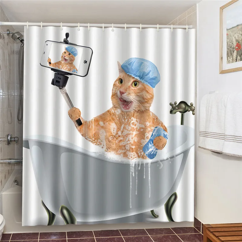 Занавеска для душа, из полиэстера, с принтом кота, водонепроницаемая