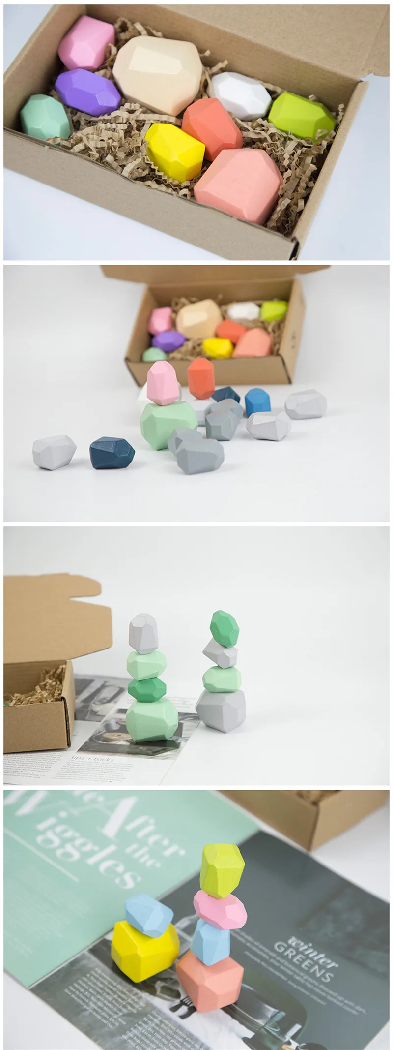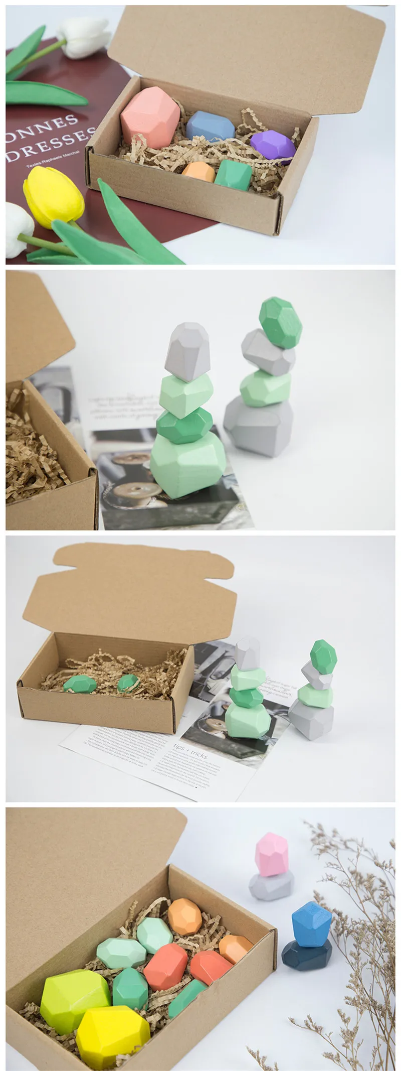 HX5D 10 шт. детский деревянный цветной камень, Штабелируемая игра, ...