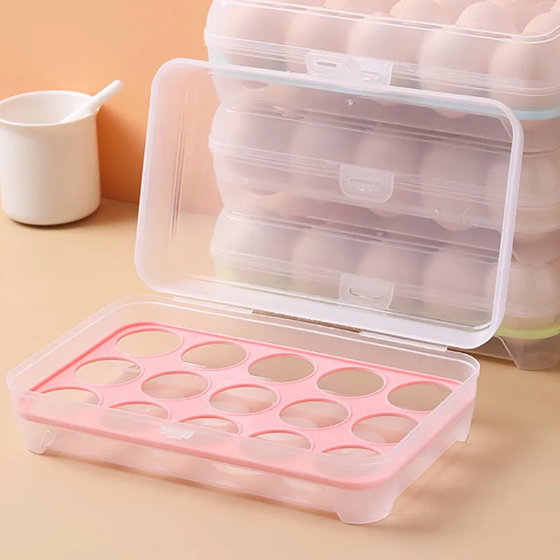 Пластиковый контейнер для хранения яиц, 15 ячеек, портативный контейнер для хранения пищевых продуктов, лоток для яиц в холодильнике из полипропилена, контейнер с крышкой