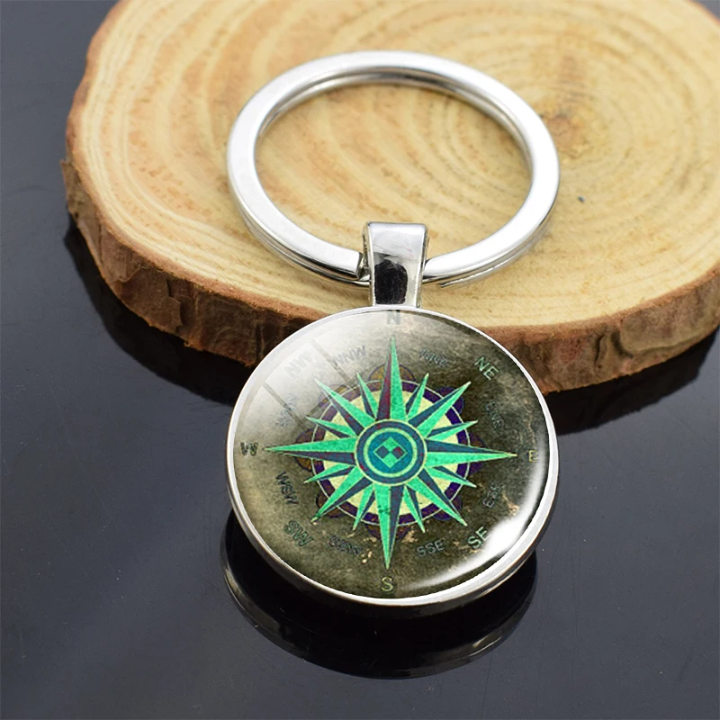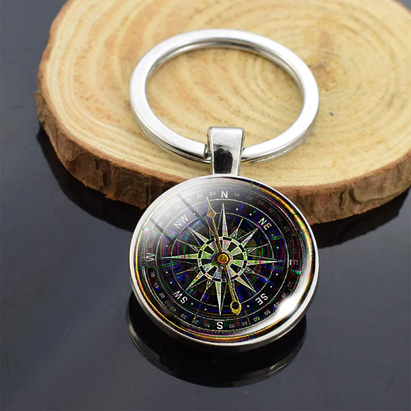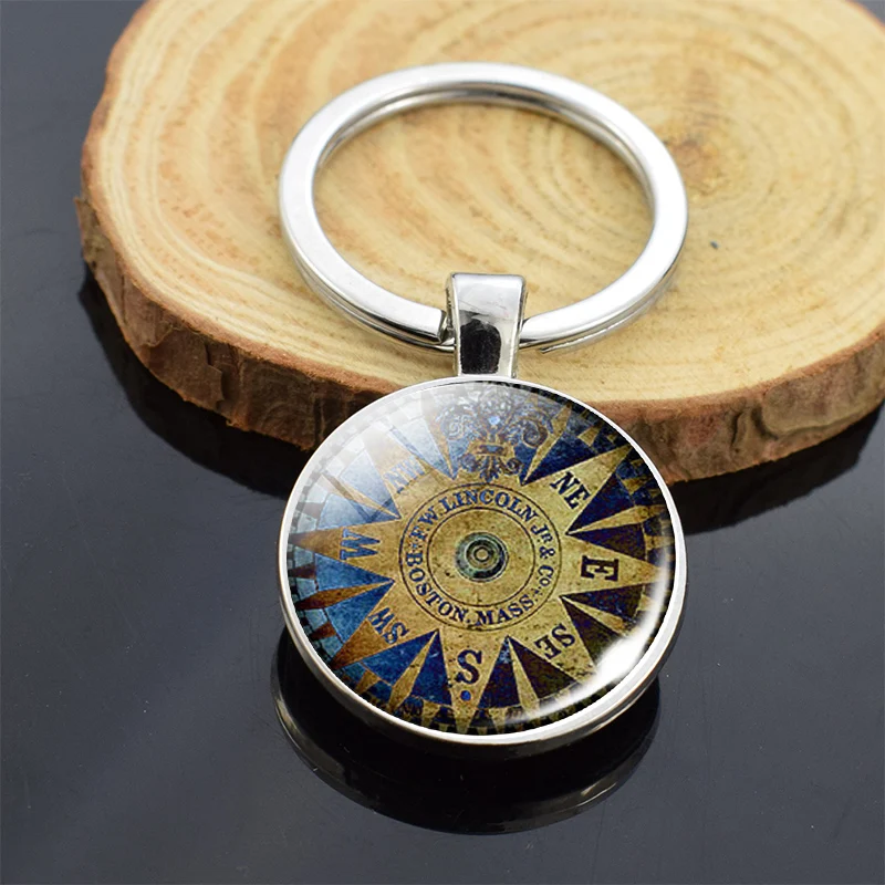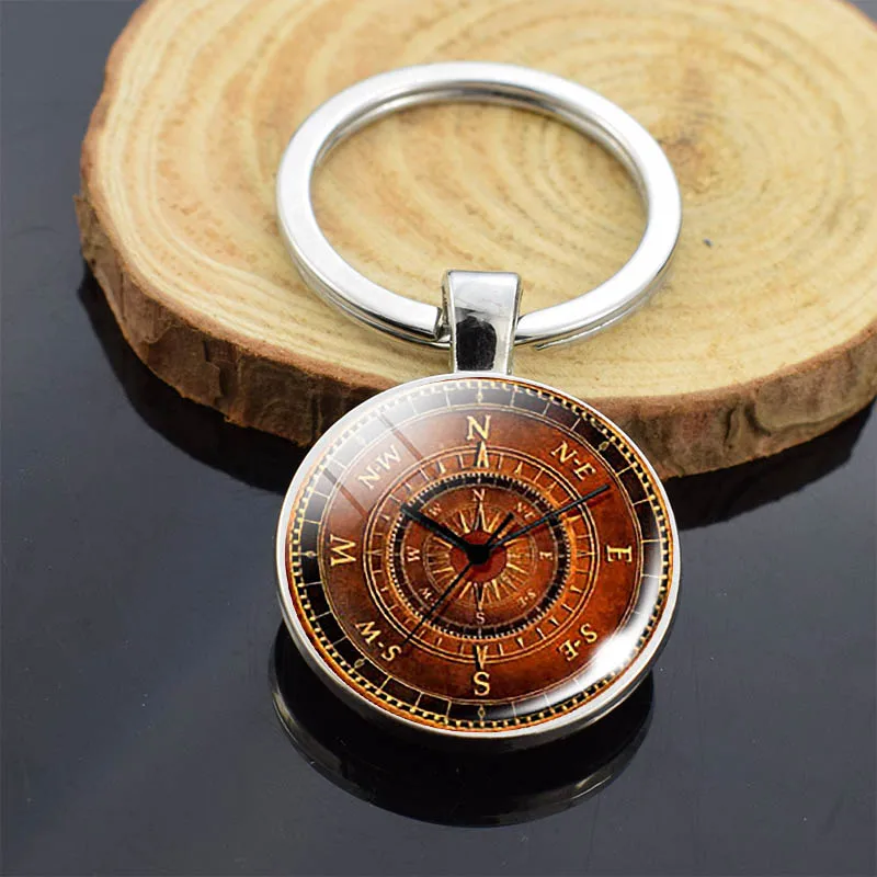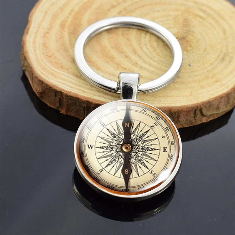 Винтажные в форме компаса фото двойные боковые стекла брелок с кабошоном Мужская и женская сумка кулон брелок для ключей держатель для путешествий, подарок, не настоящий компас