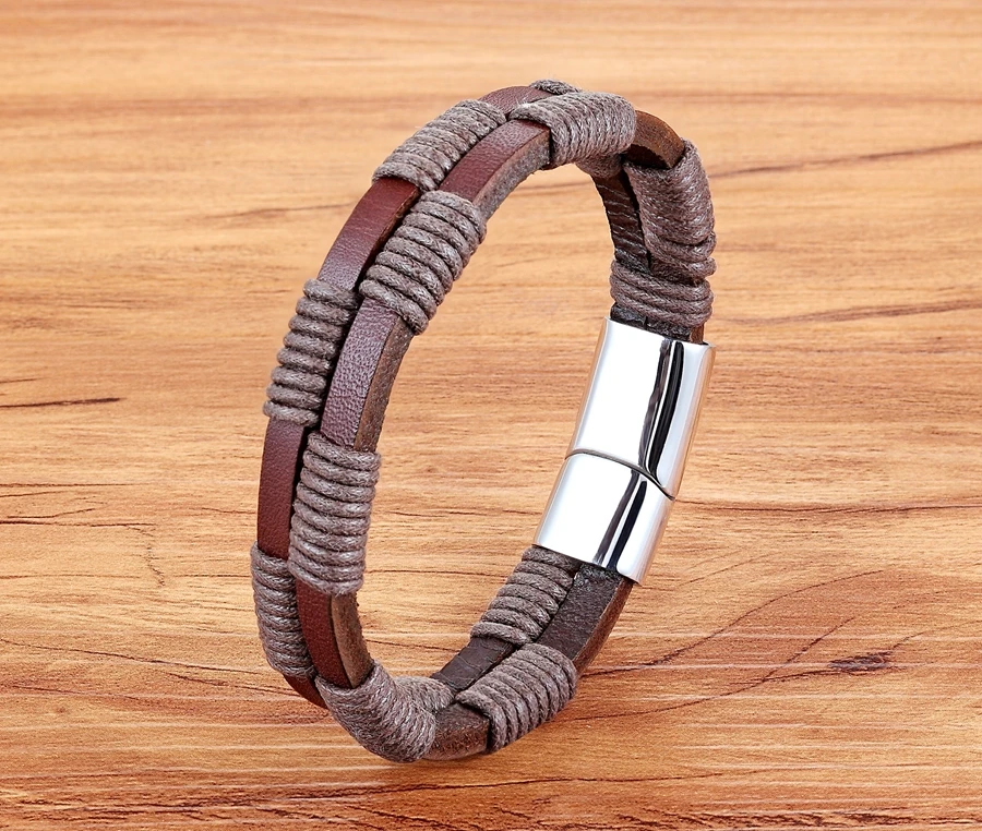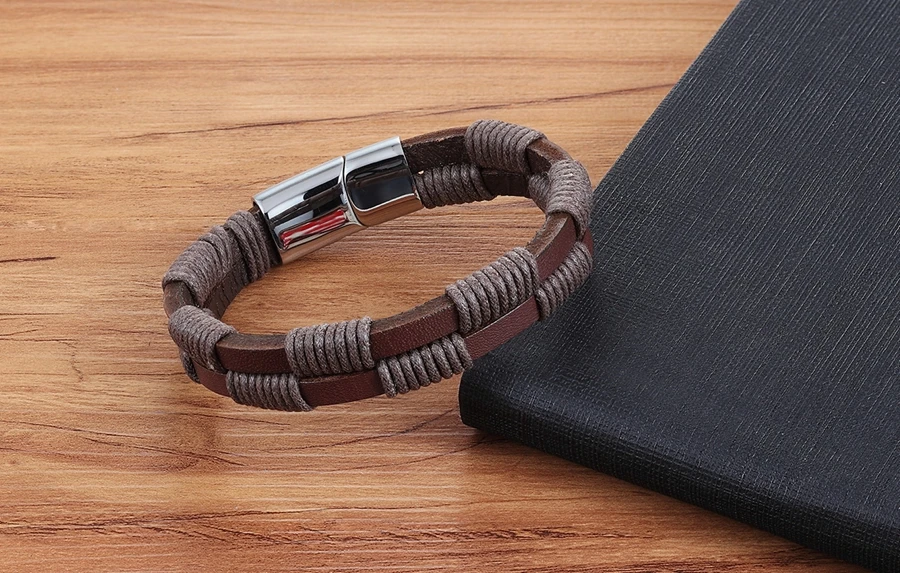Браслет мужской из натуральной кожи, модное ювелирное изделие с нат...