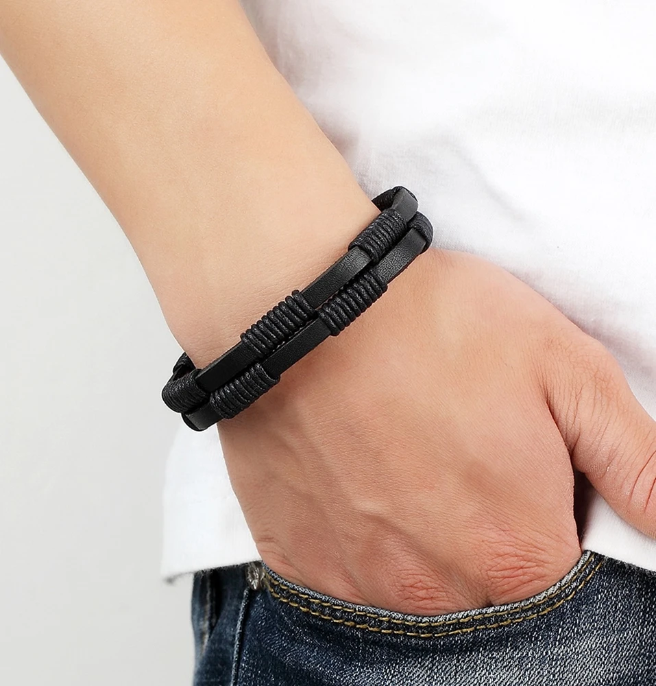 Многослойная кожаная комбинация, маленькие аксессуары, мужские брас...