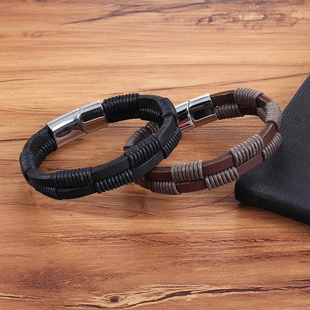 Плетеный браслет из натуральной кожи XQNI черногокоричневого цвета ...