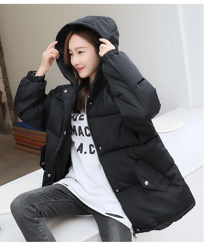 Новинка 2020, женская зимняя куртка, Толстая теплая парка с капюшоном, пальто, женские пуховые короткие куртки с хлопковой подкладкой, свободная женская верхняя одежда