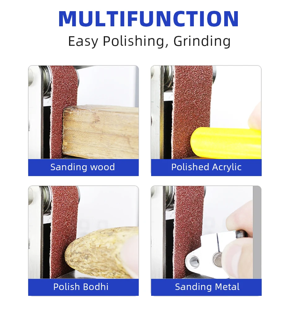 Характеристика:-Встроенный Противоскользящий двойной подшипник, пылезащитный-Тонкая работа, разумный дизайн и высокая точность.-Простой дизайн с использованием серебряного распылителя для защиты окружающей среды.-Гибкий верстак, все виды регулировки угла в сердце.-Уникальный Автоматический дизайн затяжки позволяет легко полировать.-2,0 утолщенный пол, с использованием европейских стандартных амортизаторов, бесшумная стабильность и более противоскользящая.Посылка включает в себя:1x регулируемый пояс машина5x шлифовальный ремень5х гаечный ключ1x адаптер