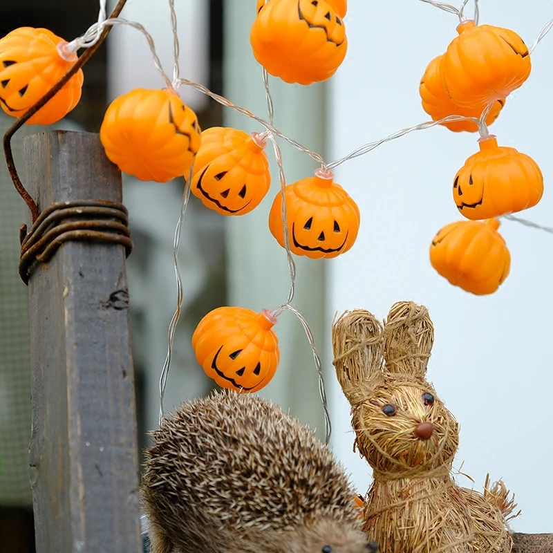 Название продукта: светильник тыквы на ХэллоуинРазмер: Размер тыквы: около 5 см в ширину и около 4 см в высотуМатериал: АБС + медь + пластикКоличество ламп: 10 лампДлина: 1 мРежим питания: батарейный блок