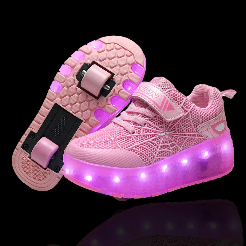 Светящиеся Детские кроссовки с двумя колесами, размеры 28-43
