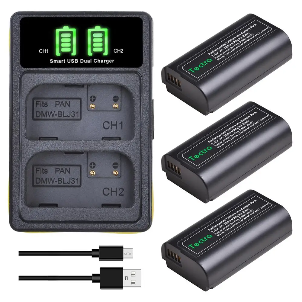 2x3050mAh DMW-BLJ31 DMW BLJ31 батарея + LCD USB двойное зарядное устройство для Panasonic LUMIX S1,S1R ,S1H, LUMIX S серии беззеркальных камер