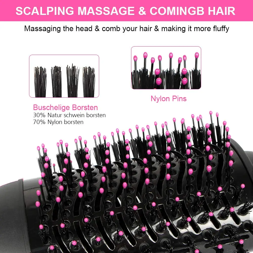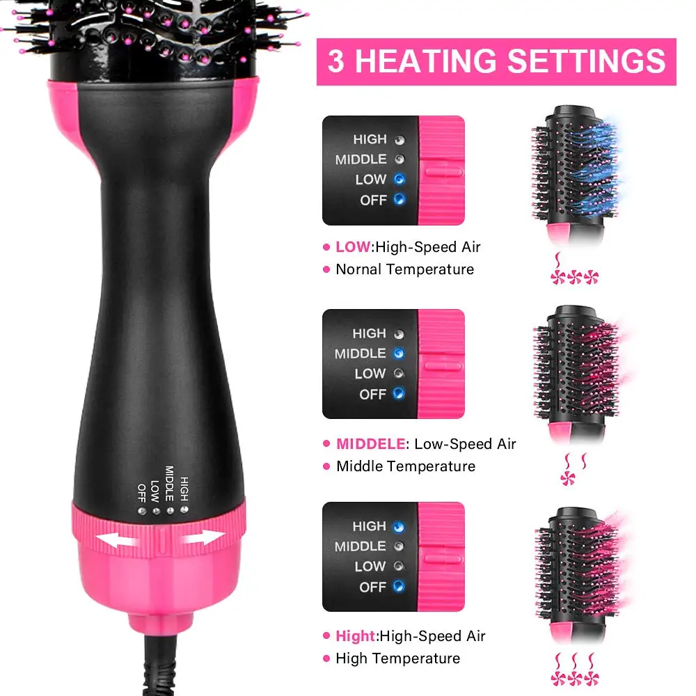 * Горячий фен 3 в 1-выпрямитель-бигуди: Идеально подходит для сухих и влажных волос и всех типов волос, эта щетка для фена придает вашим волосам гладкость, шелковистость, натуральный глянцевый вид, закрывая кутикулу волос. Регулируемая температура светодиодный светильник ка, 3 уровня нагрева для создания разной прически, высокий уровень нагрева для густых волос. Низкий уровень нагрева для тонких волос. Вы можете использовать его как фен или стайлер, чтобы ваши волосы были волнистыми или прямыми.* Высококачественный и Овальный дизайн кисти: овальный край может объемить ваши волосы, чтобы они выглядели более пушистыми. Кисть разработана с нейлоновый штырь и ворсистой щетиной для легкого распутывания. В отличие от обычных фена, этот объём можно разместить ближе к коже головы для подтяжки. Пробка с защитой от протечек, крышка воздухозаборника может предотвратить попадание грязи на устройство.* Керамическое покрытие и ионная технология: керамическое покрытие защищает ваши волосы от чрезмерной укладки с равномерным распределением тепла, которое быстро проникает внутрь наизнанку для меньшего повреждения. Отрицательные ионы насыщают воздушный поток. 3. Настройка нагрева для гибкости укладки.* Простота в эксплуатации и революция во времени игры: мощность 1000 Вт обеспечивает нужный нагрев, быстрый нагрев, легко выпрямляйте волосы самостоятельно под любым углом с помощью поворотного шнура питания длиной 2 м на 360 градусов, придающего шелковистый блеск и текстуру с помощью этого щетка для горячей укладки волос вместо фен, выпрямите, а затем плойку, сэкономите ваше время.* Удобство в поездках и 100% гарантия удовлетворенности: 110-220 В/50-60 Гц, вы можете взять его с собой куда угодно, чтобы получить гладкие и шелковистые волосы за считанные минуты, где бы вы ни находились. Если вы не удовлетворены нашим феном, мы вернем вам деньги или заменим ваш товар до тех пор, пока вы свяжетесь с нами. Покупайте этот товар с полной уверенностью.