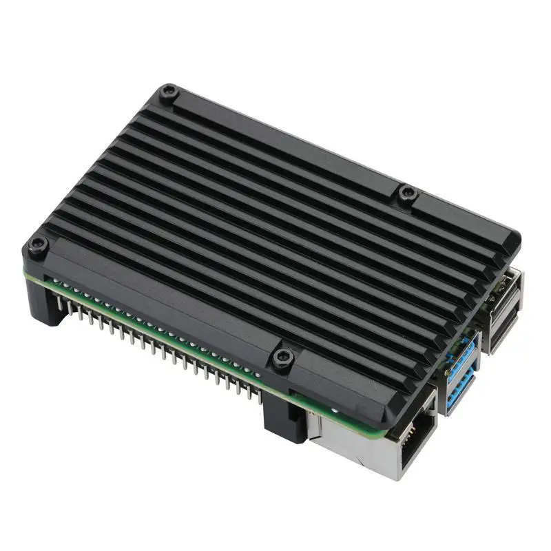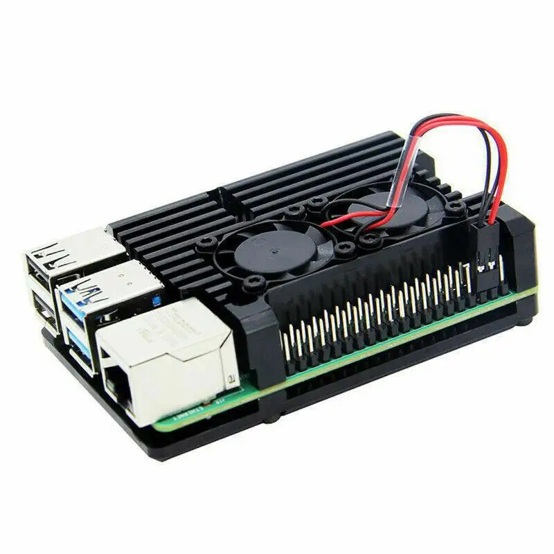 Алюминиевый Чехол для Raspberry Pi 4 с двойным охлаждающим вентилятором, металлический корпус, черный корпус для RPI 4, Модель B