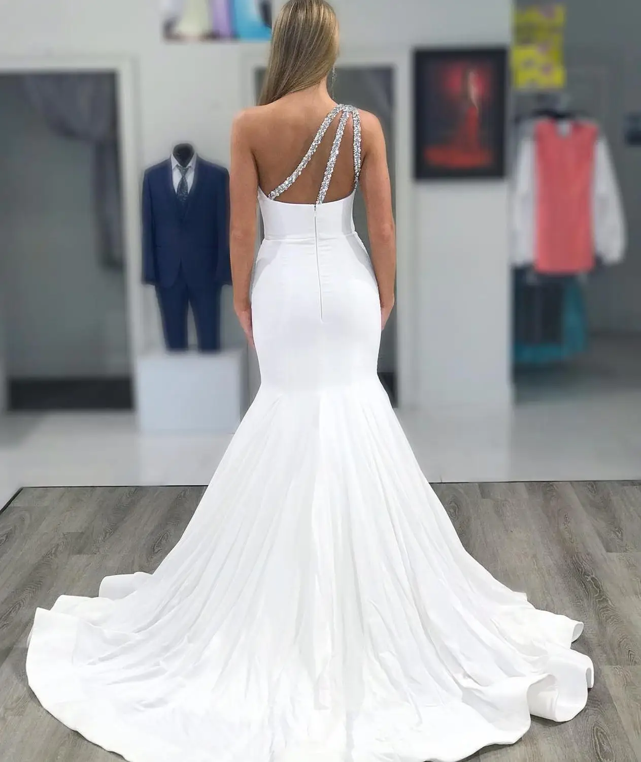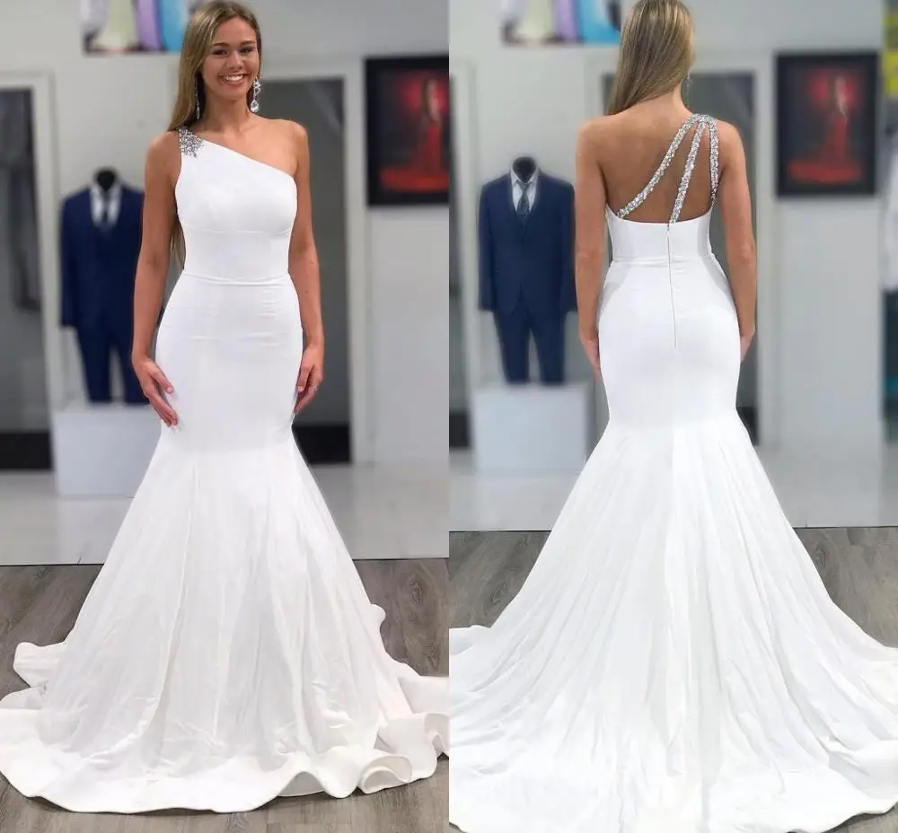 Очаровательные свадебные платья русалки на одно плечо с открытой спиной со шлейфом