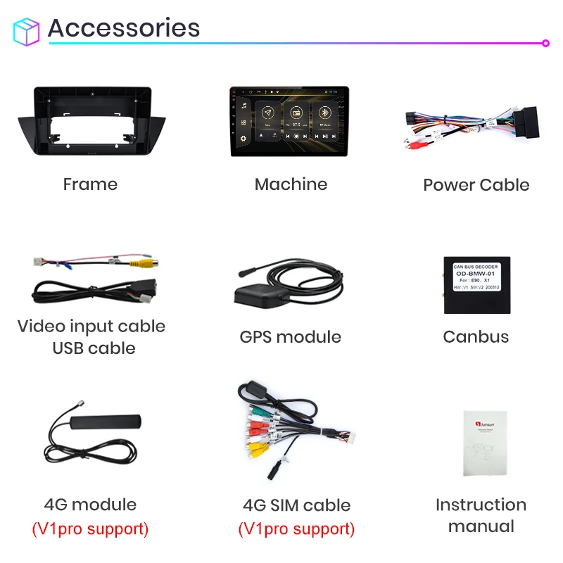 1. Штифт-штифт: Кабель питания Junsun radio' является штифтом для штифта, прост в установке;2. Встроенный Carplay/ Android Auto: Поддержка версии V1Pro, просто используйте кабель телефона, подключите его, стабильный и простой в использовании; (V1 поддерживает только Android Auto, но нужно покупать; V1C не поддерживает)3. Поддержка подголовника: только поддержка версии Junsun V1;
