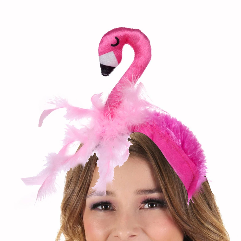 Женские милые девушки повязка с Фламинго ручной работы бархатные повязка на голову в виде животного вечерние аксессуары для волос для Хэллоуина Веселые Косплей повязка на голову розового цвета