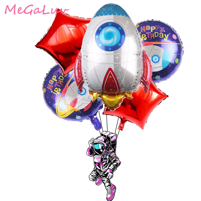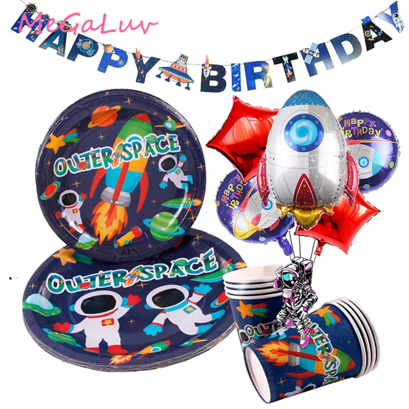 Воздушные шары в виде ракеты для дня рождения, одноразовые тарелки, скатерть на планете, Галактику, товары для дня рождения