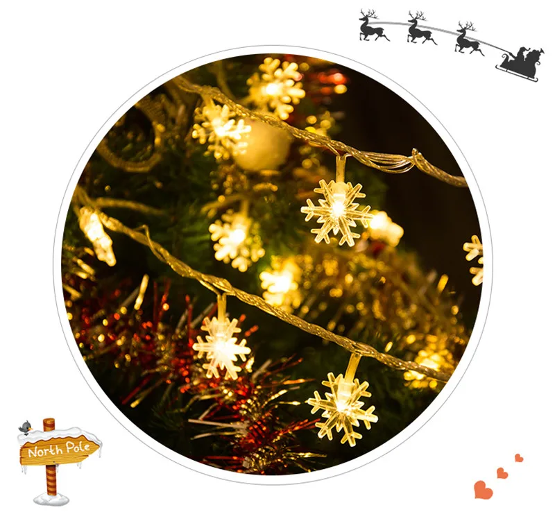 СВЕТОДИОДНЫЕ гирлянды со снежинками 1,5 м/3 м/6 м/10 м, Рождественские елки, украшения, огни на новый год, праздник, свадьбу, вечеринку, декоративное освещение