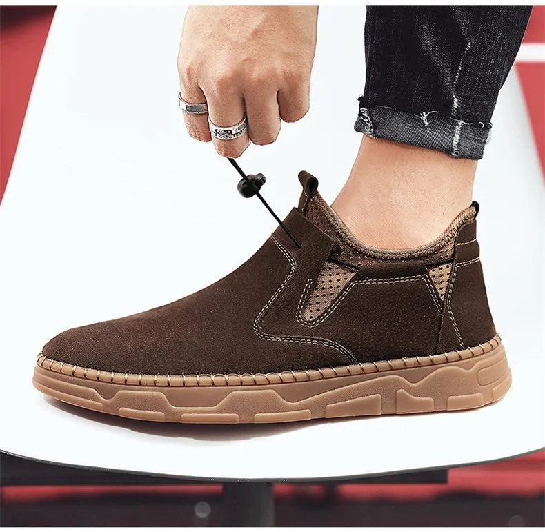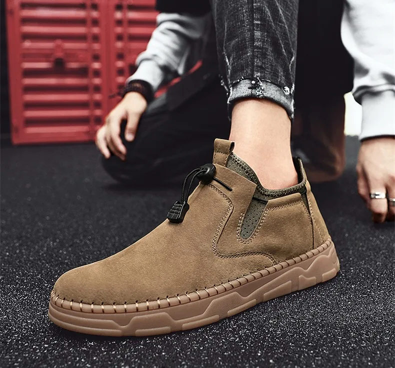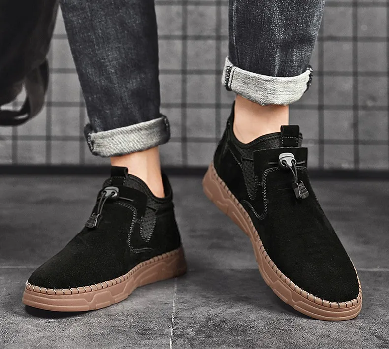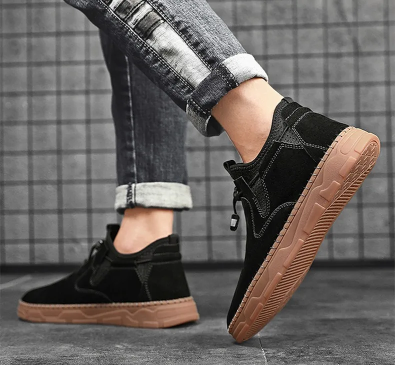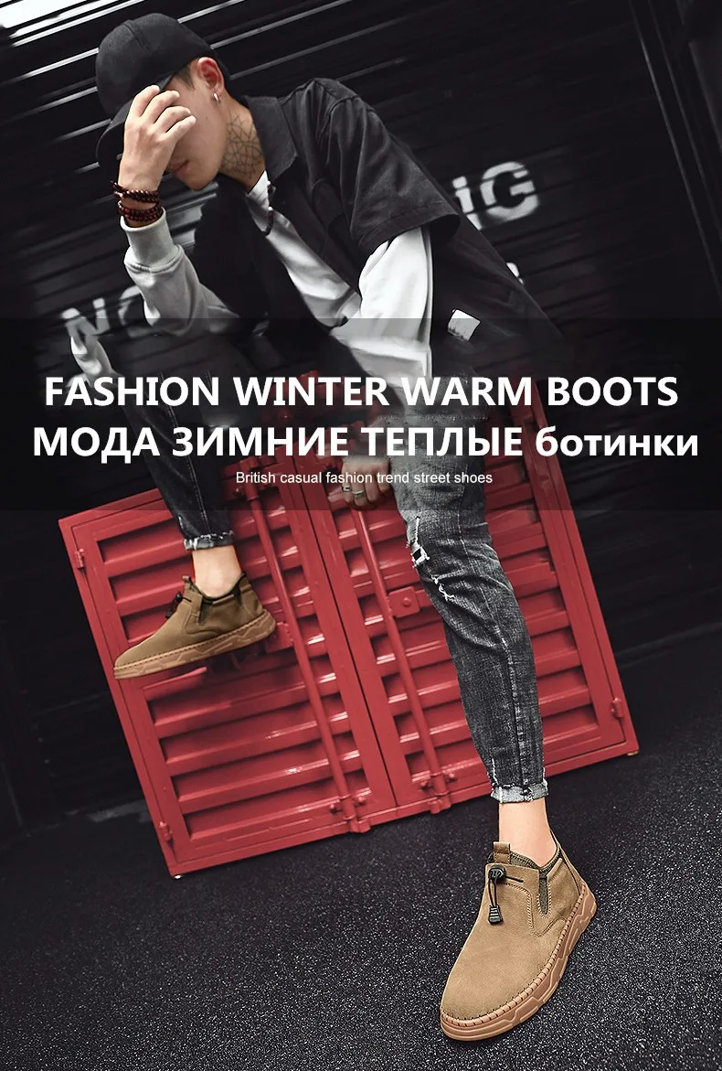 Ботинки мужские зимние из спилка, модные полусапожки, теплый мех, плюш, на шнуровке, мотоциклетные ботинки, размеры 48