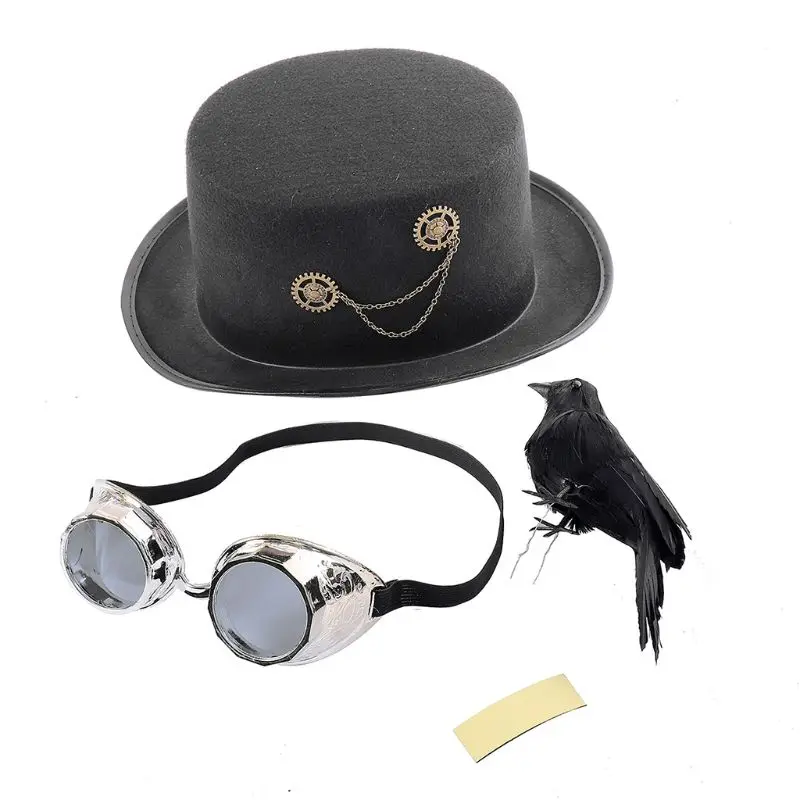 Карнавальный костюм на Хэллоуин стимпанк ворона шляпа с очками шест...
