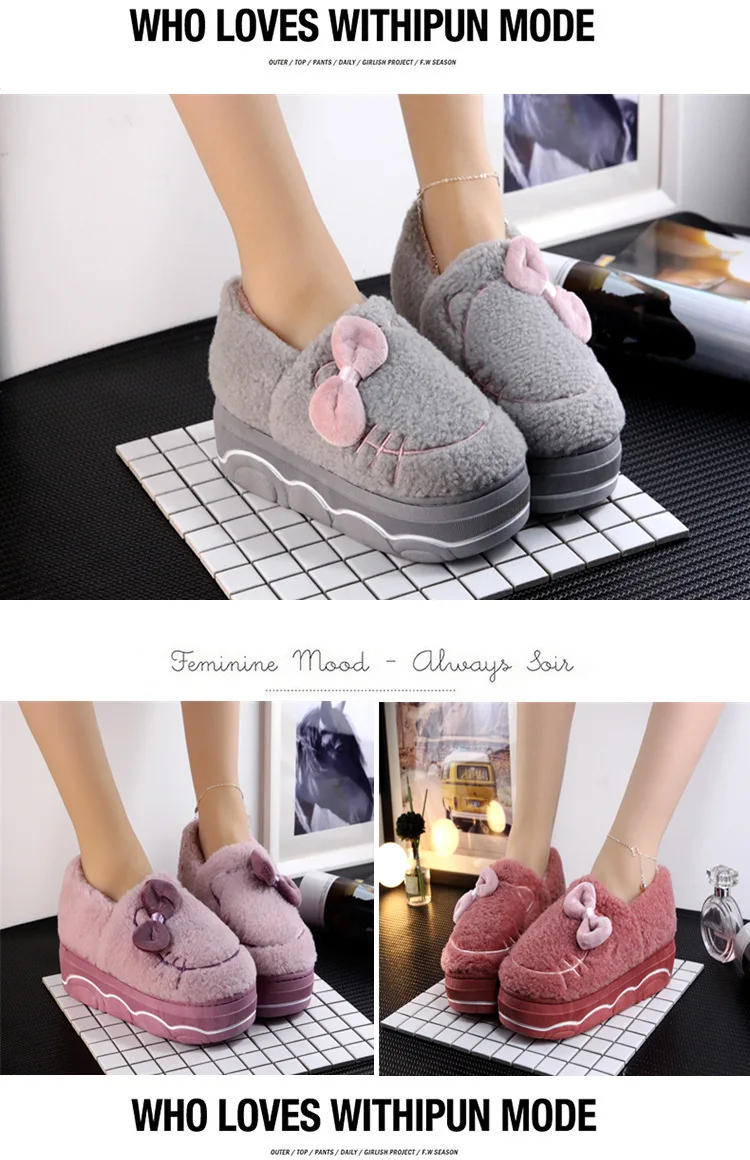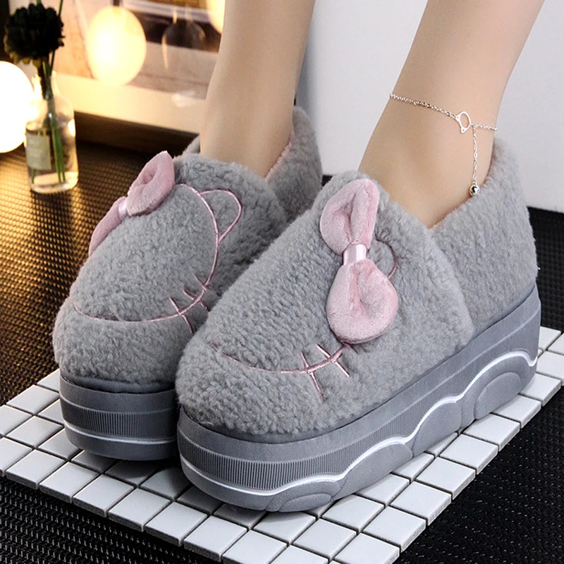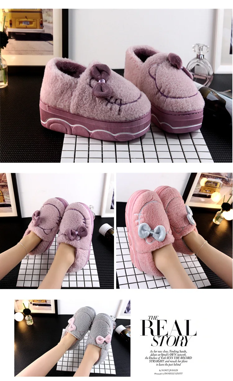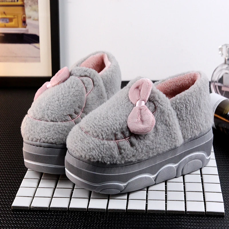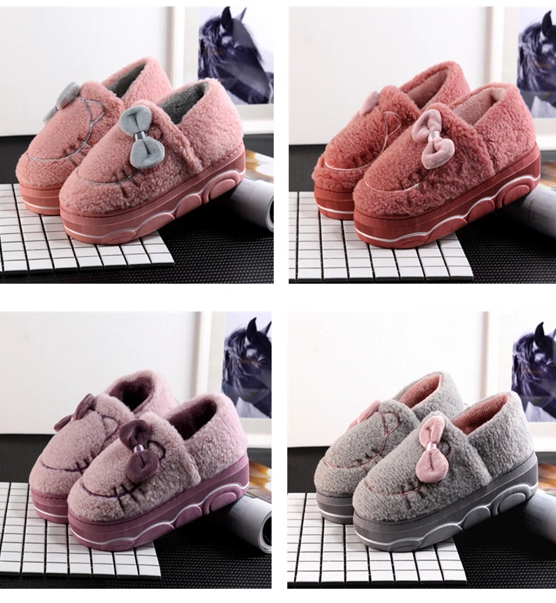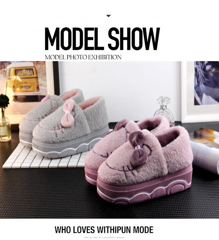 Мягкие зимние женские тапочки на платформе, износостойкие теплые плюшевые тапочки, домашние тапочки с увеличенной подошвой, милые женские Тапочки