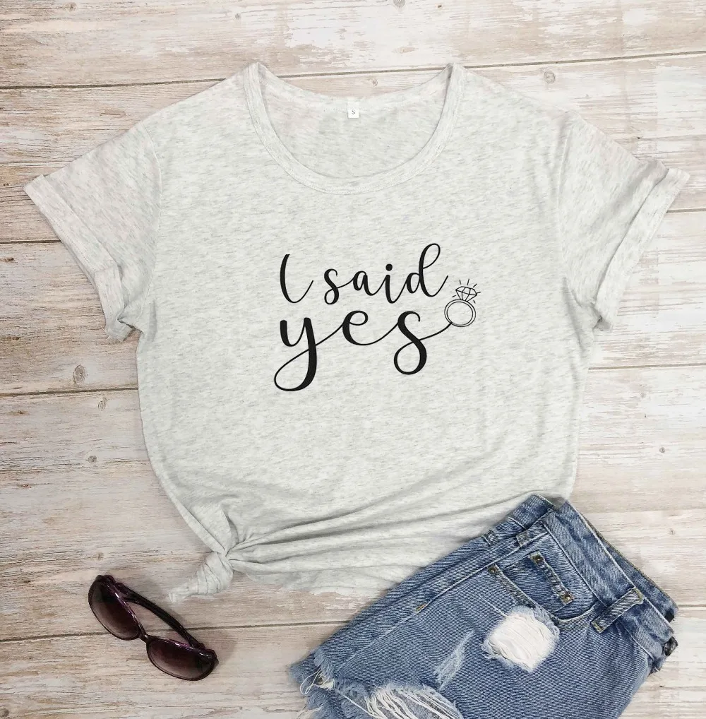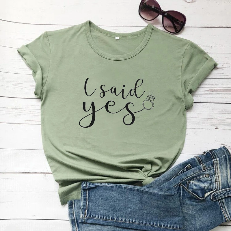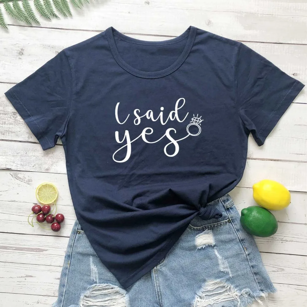 Я сказал, да, бриллиантовое кольцо, графическая Женская Модная хлопковая Свадебная футболка с графикой для молодой невесты, подарок для девочки, футболки для невесты, милые топы, M470