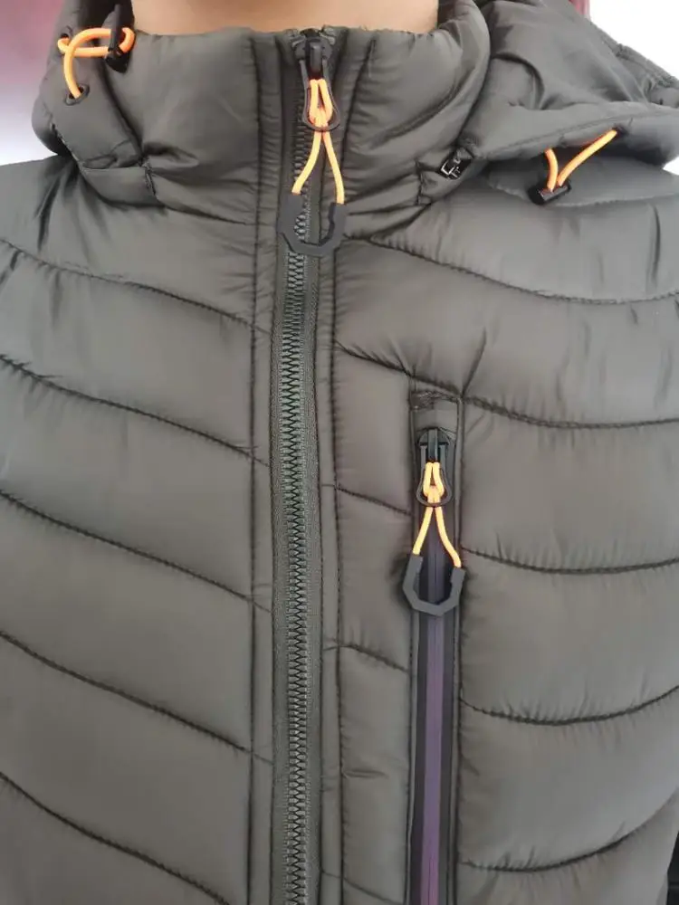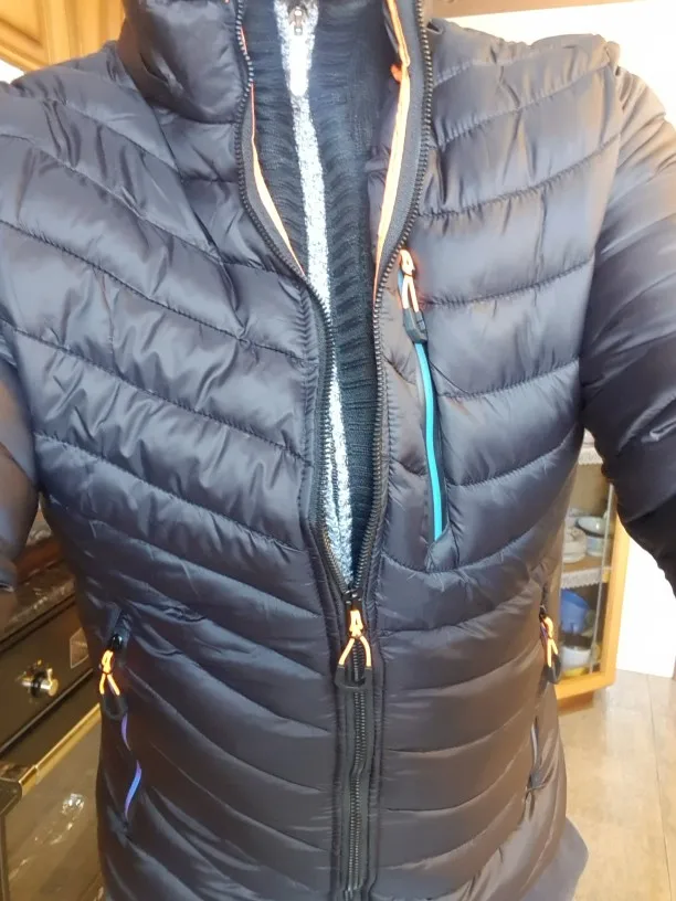 Куртка очень качественная, сделана очень аккуратно, придраться не к чему. Легкая и теплая.