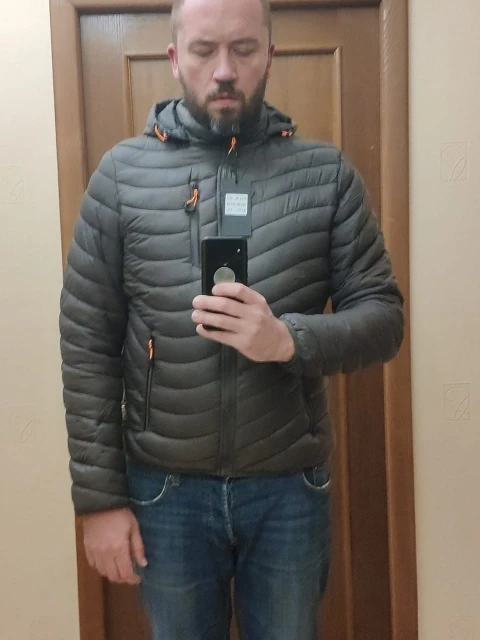 Норм куртка, но курить в ней опасно)) тонкий верхний слой. А так легкая, симпатичная. С размером внимательнее, я взял на 1 размер больше, чем по таблице, отлично подошла.