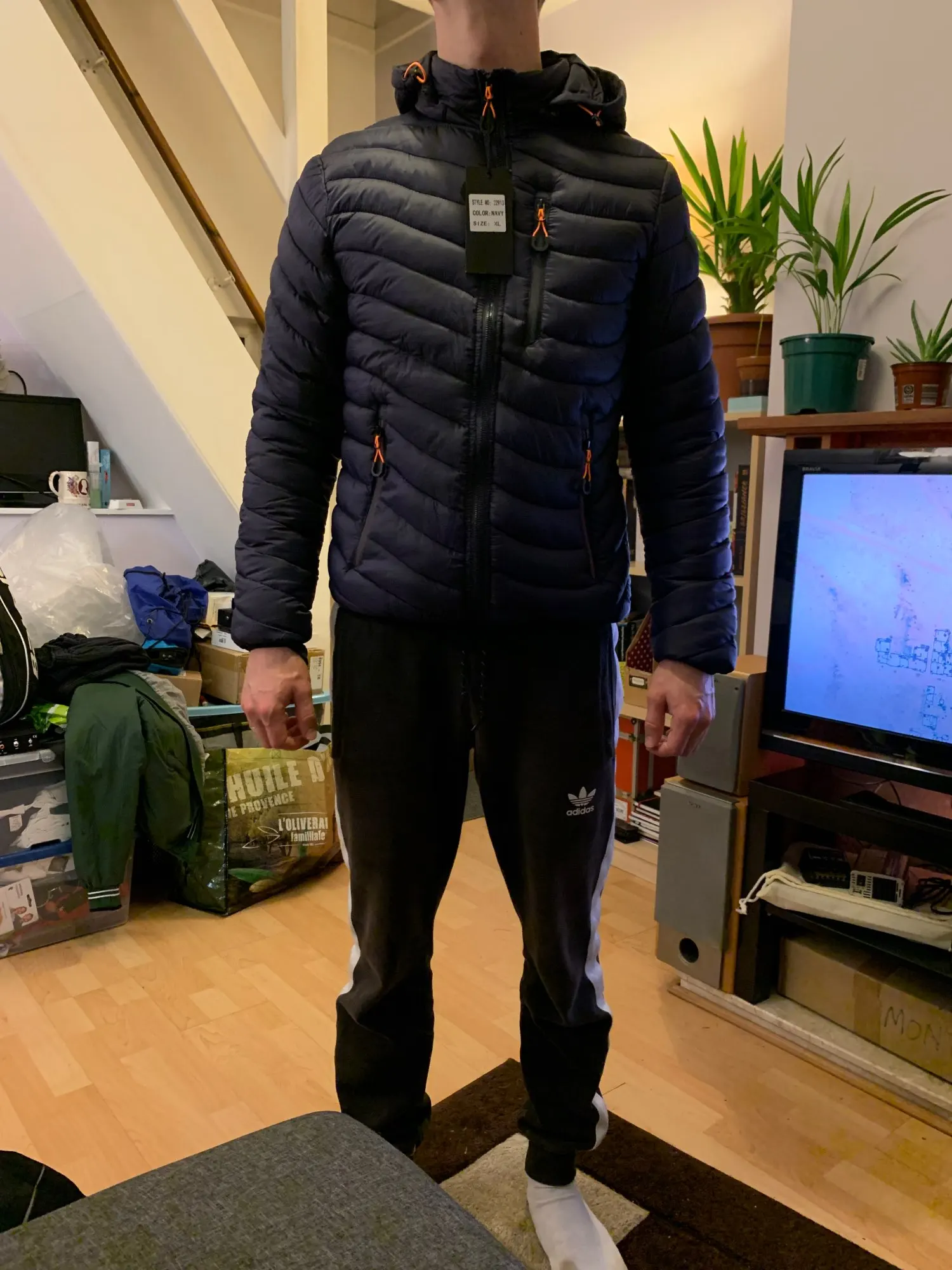 Куртка выглядит хорошо, молнии выглядят хорошо. Они очень хорошо подходили мне в этом магазине с темой размеров, я собирался заказать L, и они сказали мне, что это может быть XXL, и это подходит мне идеально. Я прибываю в оговоренную дату