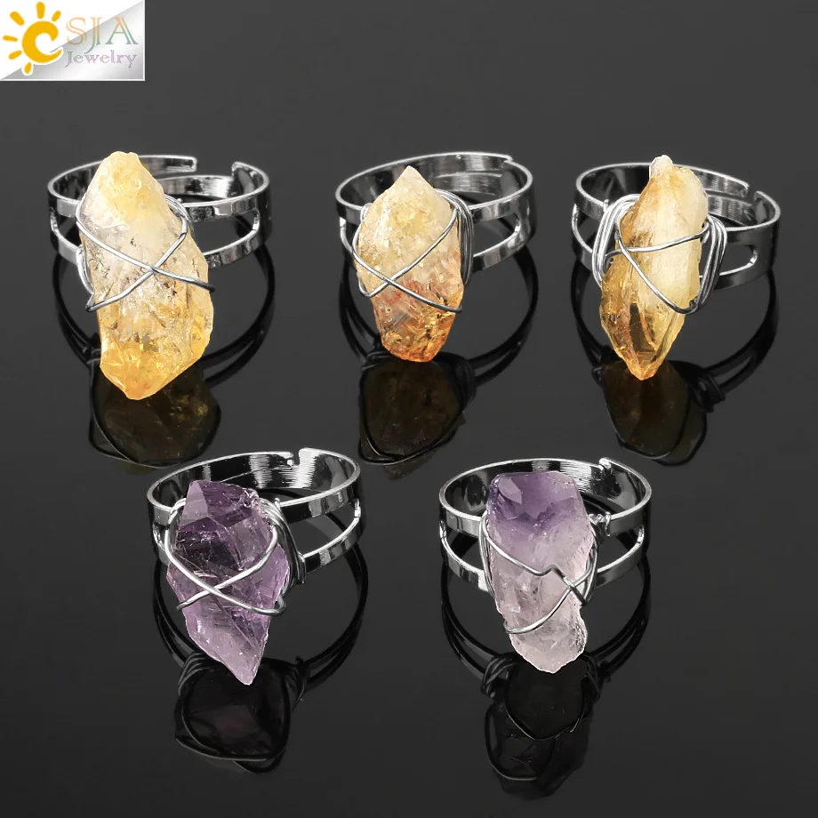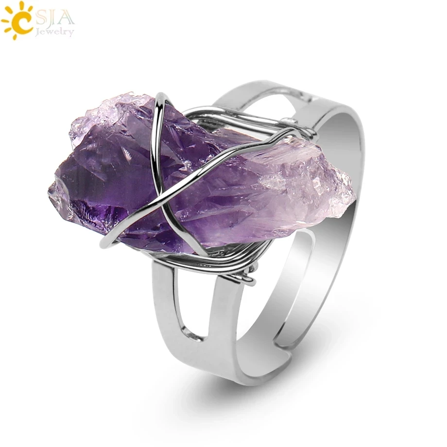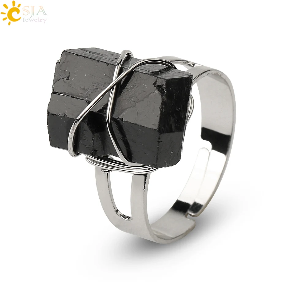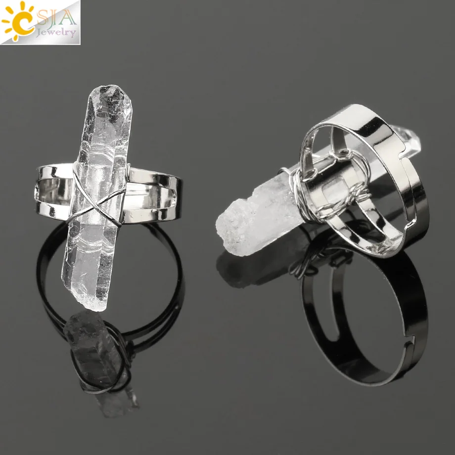 Кольцо женское нестандартного размера CSJA, с кристаллом из натурального камня, серебристого цвета, регулируемое, G559